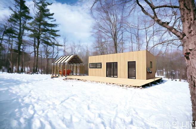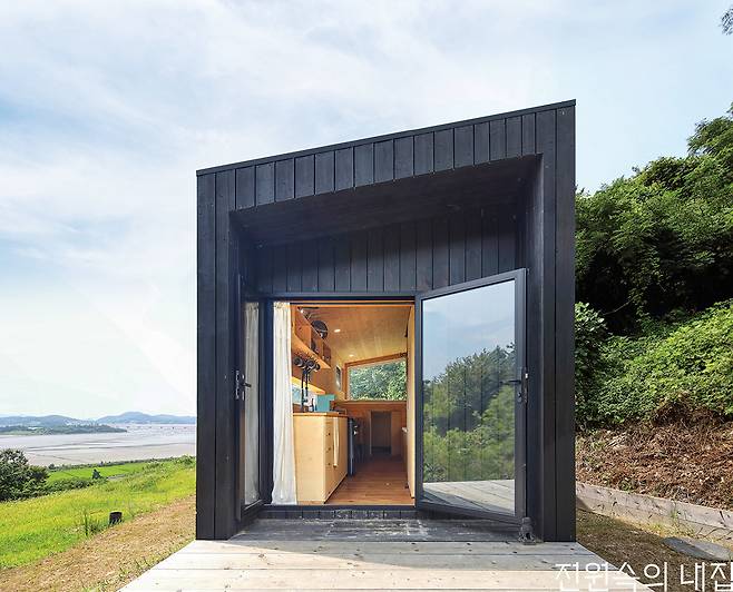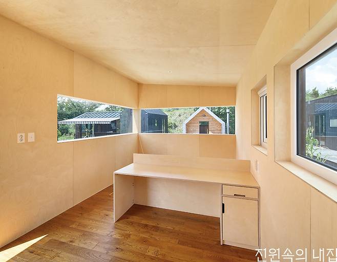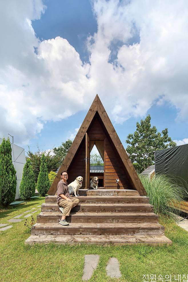 4평 규모의 세모집은 동화 속 오두막 같은 외관이 특징이다. 별채, 창고, 농막, 관리동 등 다용도로 사용할 수 있다. 넓은 삼각창은 자연 풍경을 가득 받아들여 작은 면적이지만 개방감을 느끼도록 한다.