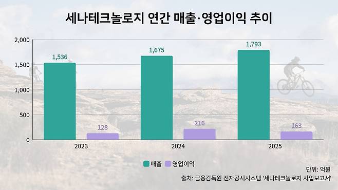 세나테크놀로지의 1분기 매출총이익률은 47.4%로 최근 5년 내 가장 높은 수준까지 올랐다. 온라인 판매 채널 다변화와 유통 구조 효율화가 맞물리면서 수익성이 개선된 것이다. 회사는 북미와 유럽을 중심으로 140여개국, 약 4000개의 글로벌 유통망을 확보하고 있으며, 전체 매출의 약 95%가 해외에서 발생하는 수출형 사업 구조를 갖추고 있다. 지난해 지역별 매출 비중은 유럽 55.2%, 북미 24.8%, 아시아 15.6% 순이었다.