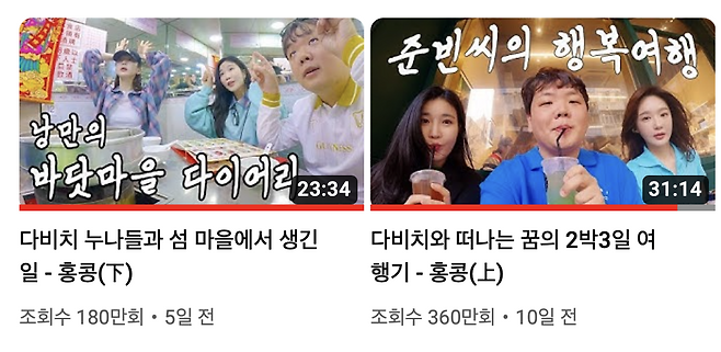 곽튜브 다비치 홍콩 여행 유튜브 속