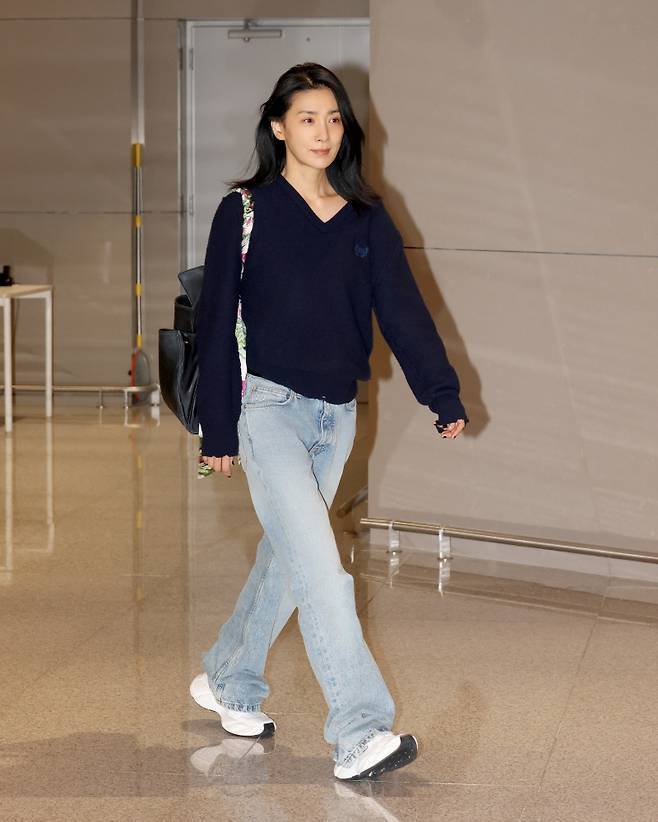 배우 김서형이 감각적인 아이템 셀렉과 절제된 컬러 매치로 시크함과 여유를 겸비한 공항패션을 완성하며, 발렌시아가의 무드를 세련되게 표현했습니다.