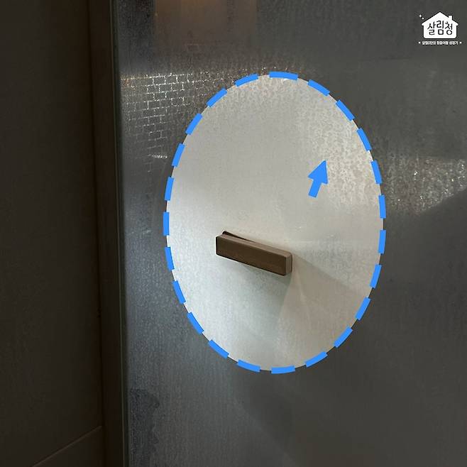 첫 번째 문제점은 바로 샤워부스에 물자국이 심하게 남아있었다는 거예요. 평소엔 잘 보이지 않았는데 사진으로 찍으니 더 선명하게 보이네요. 큰 면적을 강력하게 청소할 수 있는 청소세제가 시급할 것 같아요!