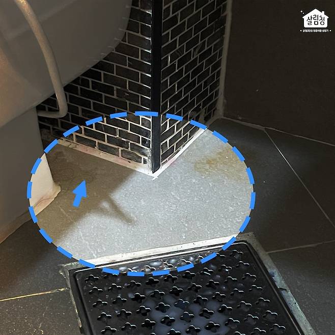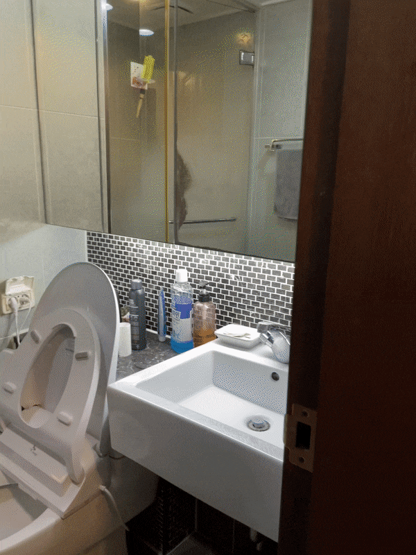 마지막으로 발견한 변기 뒤편과 세면대 아래의 물 웅덩이. 이런 곳은 그때그때 닦아주어야 화장실이 깨끗해진다던데. 시시때때로 간단히 닦을 수 있는 청소도구가 있으면 좋겠어요.