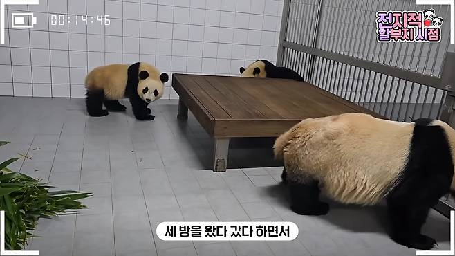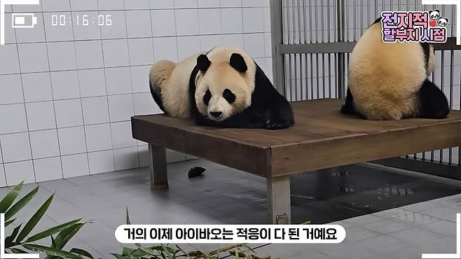 영상 속에서 엄마 아이바오는 여유로운 모습으로 새로운 방에 금방 적응하는 모습을 보였는데요.