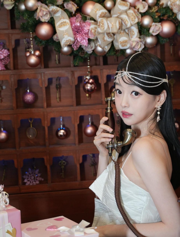 강아랑은 헤어를 주얼리로 장식하고 롱귀걸이를 매치해 시선을 사로잡았다.