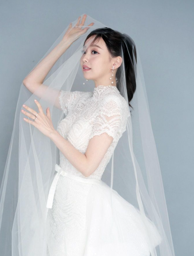 서울대 의대출신 수의사와 결혼한 KBS 간판 기상캐스터 강아랑이 웨딩화보속 웨딩룩을 선보였다.