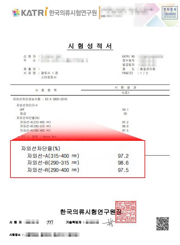 자외선 차단 인증 성적서