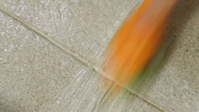 줄눈에 치약을 적당하게 바른 후에 솔로 열심히 문질러 주세요. 치약을 활용하면 다른 세제보다도 더욱 반짝반짝 아주 깔끔하게 닦을 수 있어 좋답니다.