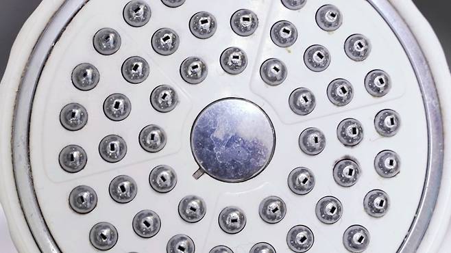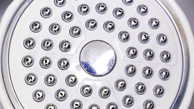 두 번째는 샤워기 헤드 청소! 샤워기로 매일 샤워를 하다 보면 물때가 끼기 참 쉬운데요. 물 나오는 구멍을 보면 더러운 것을 아주 쉽게 보실 수 있어요.