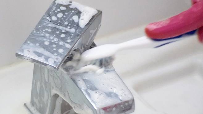 마지막은 수도꼭지 관리예요. 이곳은 정말 관리가 쉽지 않은데요. 이럴 땐 치약을 활용해 보세요.