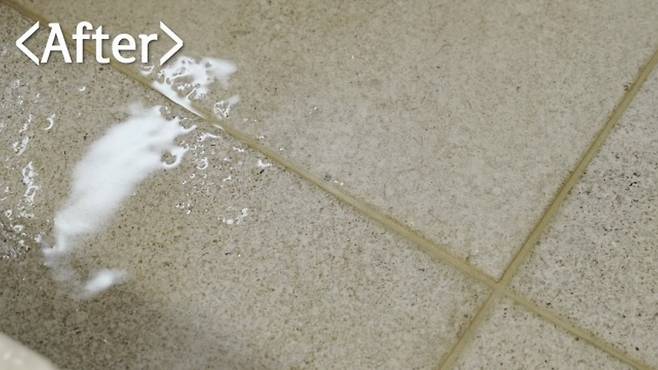 첫 번째는 줄눈 청소예요. 화장실 타일은 줄눈으로 되어 있는데요. 항상 이곳은 물때가 끼기 쉬운 곳 중 하나죠. 묵은 물때의 경우 일반적인 세척방법으로는 잘 닦이지도 않는데요.