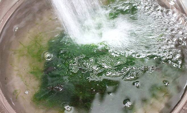 매생이는 흐르는 물에 깨끗하게 씻어 체에 받쳐 물기를 제거해주세요