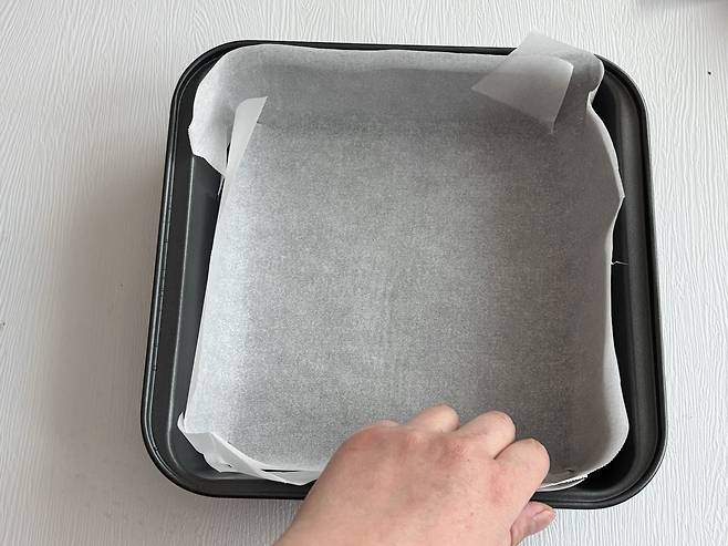 2. 사각팬에 유산지를 깔아둔다.