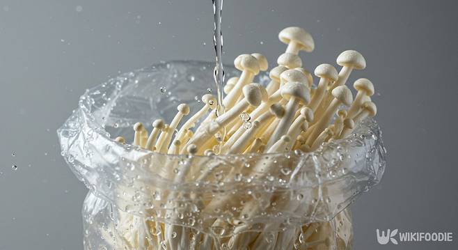 팽이버섯은 그대로 조리해도 문제가 없다고 하지만, 남아 있을 수 있는 이물질과 세균을 고려하면 씻어서 사용하는 것이 안전하다. 단, 흐르는 물로 씻으면 버섯이 쉽게 흐물거려 깨끗한 세척이 힘들 수 있다.
