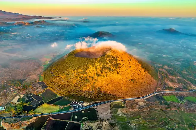 제주시 구좌읍 세화리에 위치한 다랑쉬오름은 외형부터 시선을 끈다. 거의 완벽한 원형을 이루는 이 오름은 밑지름이 1km를 넘고, 둘레는 3.3km에 달한다. 정상 높이는 227m로, 적당한 난이도의 트레킹 코스로 손꼽힌다. 하지만 진짜 감탄은 오름을 오르며 마주하게 되는 풍경에서 시작된다.