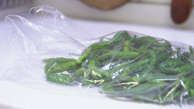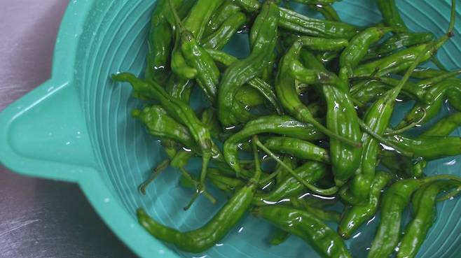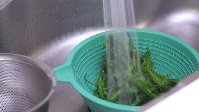 먼저 꽈리고추를 물에 한번 씻어 주세요.