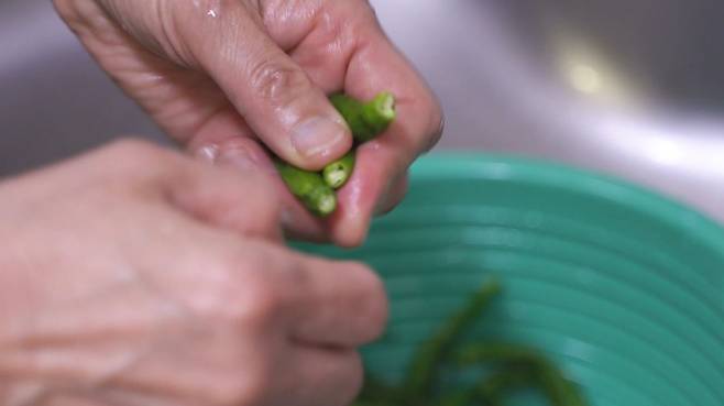 꼭지를 제거한 후 물에 한번 더 씻고,