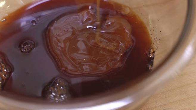 볼에 물엿, 설탕, 맛술, 간장을 넣은 후에 골고루 저어가며 섞으세요.