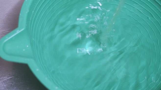 바가지에 물을 받은 후 식초를 조금 넣어 주세요.
