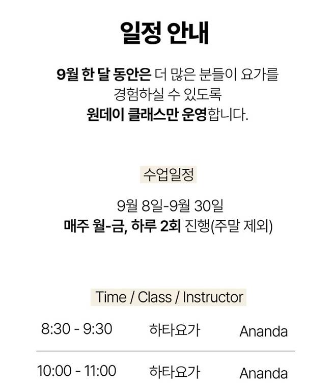 9월 5일 오후 6시에는 아난다 요가 홈페이지에서