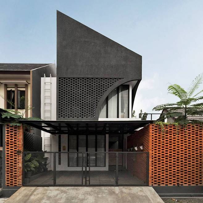 도시 속 낮은 건물들 사이, 문득 시선을 사로잡는 건물이 있다. 소란스러운 거리 속에서도 묵직한 존재감을 드러내는 이 집은 붉은 벽돌과 검정 지붕의 대담한 조화로 첫인상부터 강렬하다. 이 50평 하우스는 인도네시아 도시 한가운데 당당히 자리 잡았다.