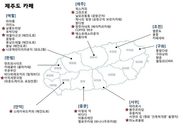 아래에 제주도의 지역별로 추천할 만한 카페들을 소개합니다.