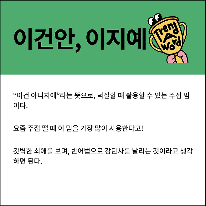 결국 ‘이건 아니지예(이건안 이지예)’와 ‘바로 이거지예’ 모두