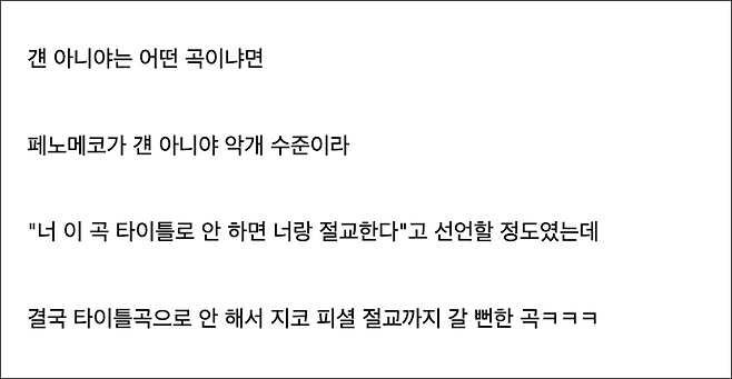 지코의 ‘걘 아니야’와 페노메코의 ‘걘 아니야 Pt.2’ 얘기를