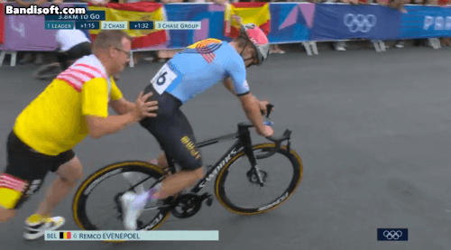 급하게 자전거 교체 요구했고 코치들이 빠르게