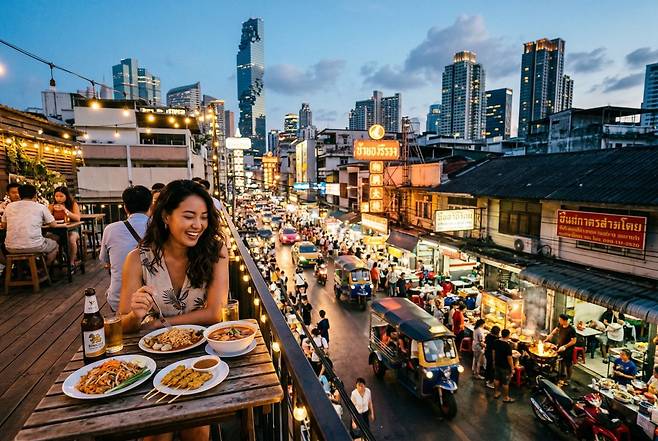 길거리 팟타이나 무삥(돼지꼬치)은 2,000원대부터 시작하며, 미슐랭 가이드에 오른 로컬 식당들도 만 원 내외로 즐길 수 있습니다. 숙소 역시 도심의 깔끔한 호스텔은 2만 원대, 고층 루프탑 수영장을 갖춘 4성급 호텔도 10만 원 초반이면 예약할 수 있습니다. 1주일 기준 약 70~80만 원이면 쇼핑과 미식을 모두 잡는 저렴한 해외 여행을 완성할 수 있어요.