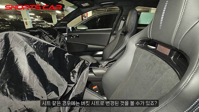 블랙 스웨이드 소재가 루프에 적용되어 실내 분위기를 어둡게 만들었다. 이와 유사한 옵션은 아이오닉 5N에도 제공되고 있다.