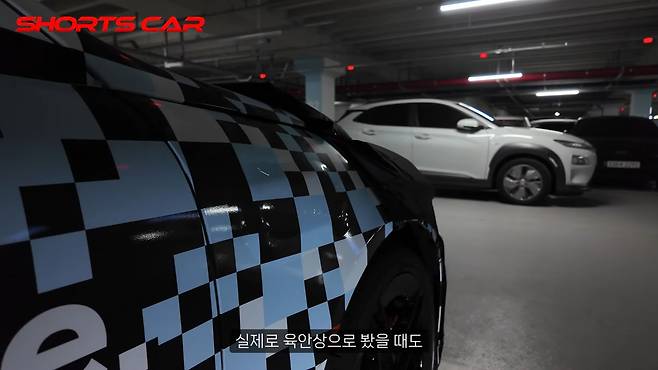 측면 디자인에서 가장 눈에 띄는 부분은 "Never Just Drive"라는 현대 N 브랜드 슬로건이 새겨진 눈길을 끄는 위장 스티커이다. 이는 단순한 위장 효과를 넘어 마케팅적인 요소로 작용하며, 차량의 존재감을 더욱 드러내고자 한 의도가 엿보인다.