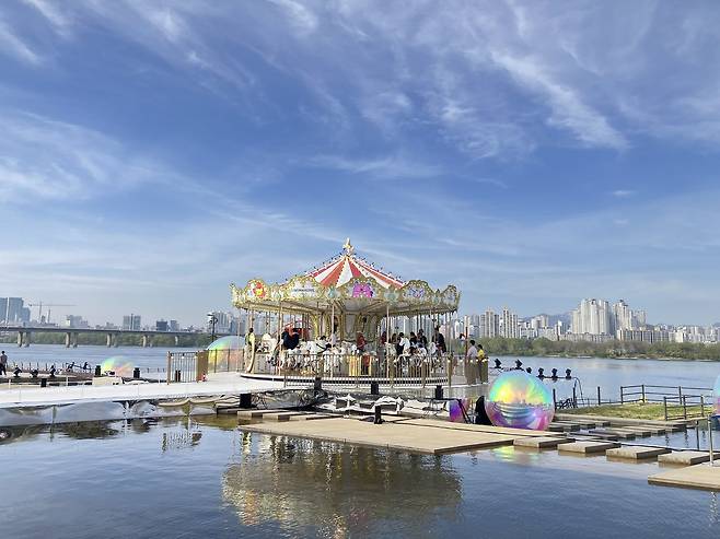 한강에서 회전목마를 타는 특별한 경험을 해보고 싶다면 ‘서울스프링페스티벌’을 놓치지 말자. 여의도, 뚝섬, 반포 등 한강 곳곳에서 즐길 거리와 볼거리가 풍성하게 펼쳐진다. 여의도 한강공원 이벤트 광장과 물빛무대에는 다양한 체험 프로그램이 진행된다. 특히 퍼스널 컬러 진단과 파츠 메이크업을 체험할 수 있는 ‘K-뷰티 체험’ 부스는 외국인 관광객들에게도 반응이 좋다. 여의도 선착장 옥상에는 화사한 꽃그네가 있으며 뚝섬 한강공원에는 K-POP 스타존이 각각 운영 중이다.
