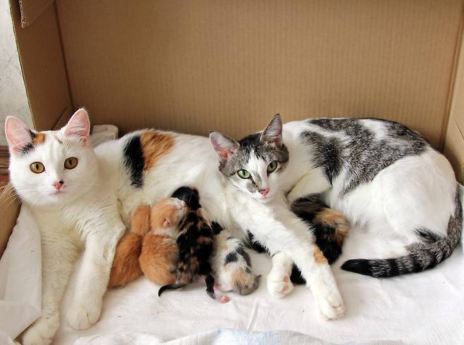 그리고 고양이는 모계사회이기 때문에 암컷 고양이끼리 영역을 공유해 함께 살고, 새끼 고양이를 서로 돌보는 경우도 많다고 합니다.