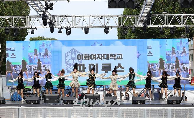 이화여대 파이루스가 멋진 치어리딩 무대를 선보이고 있다.