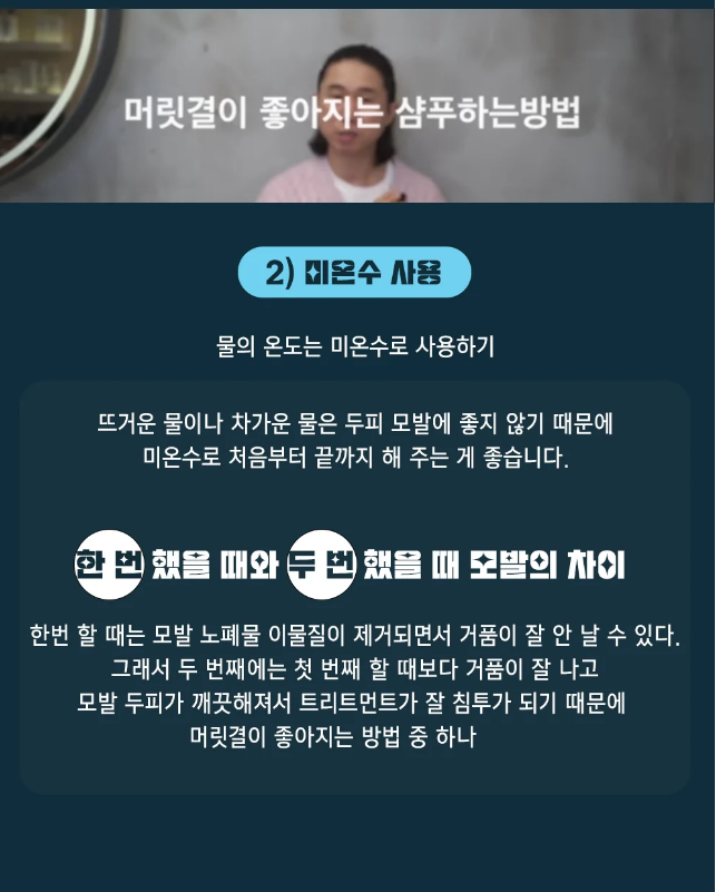 샴푸는 손끝으로 두피만 마사지하듯 문지르고