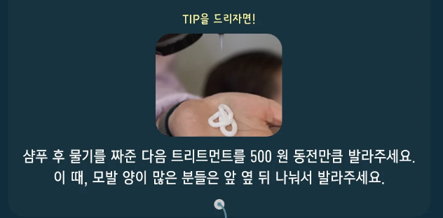린스나 트리트먼트는 두피에 닿지 않도록 모발 중간~끝에만 바르세요.