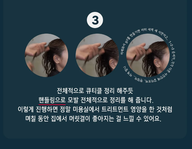 일주일에 한 번 영양팩이나 헤어마스크팩을 써보세요. 탄력 차이가 납니다.
