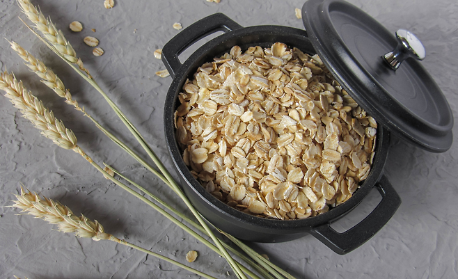 귀리와 통곡물은 콜레스테롤 수치를 낮추는 데 효과적인 식품으로 알려져 있다. 귀리에는 베타-글루칸이라는 수용성 섬유질이 풍부하게 함유되어 있어 혈류로의 콜레스테롤 흡수를 감소시킨다. 베타-글루칸은 장내에서 젤 같은 물질을 형성하여 담즙을 붙잡아 체외로 배출되게 한다. 이로 인해 간은 새로운 담즙을 생성하기 위해 혈액에서 콜레스테롤을 끌어와 결과적으로 전체 콜레스테롤 수치를 낮추게 된다. 건조 귀리 반 컵 한 끼 분량에는 약 2그램의 이러한 유익한 섬유질이 포함되어 있다. 하버드 대학의 연구에 따르면 귀리가 포함된 식단은 평균적으로 콜레스테롤 수치를 6.5포인트 낮추는 효과가 있는 것으로 나타났다.