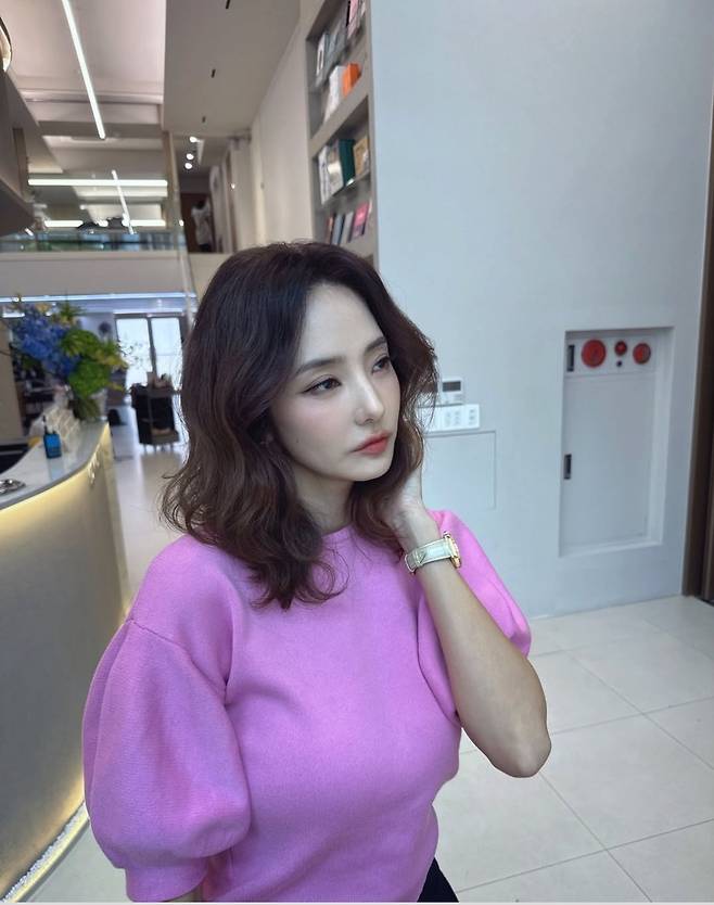 한채영은 포인트 핑크 컬러의 볼륨감 있는 퍼프 숄더 니트로 상큼하고도 세련된 분위기를 연출했습니다.