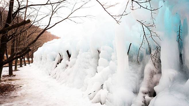 특히 겨울철이면 산책로를 따라 조성되는 거대한 빙벽과 얼음 조형물들이 방문객들을 맞이하는데요.