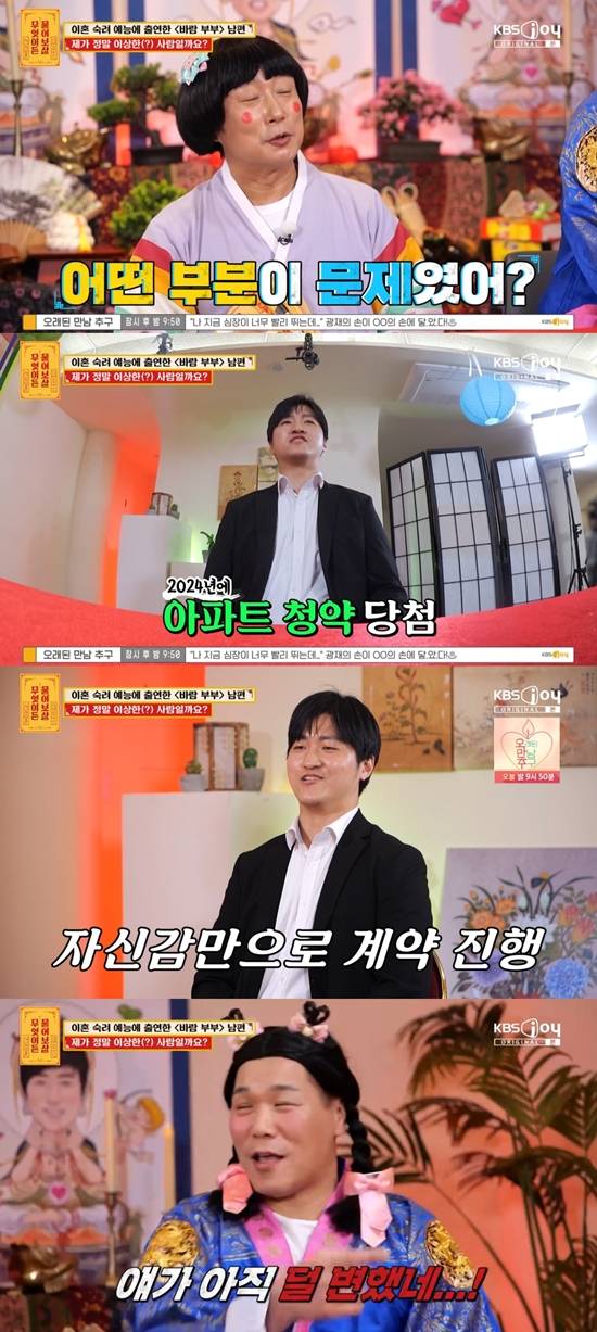 이어 그는 "대출도 받고 아내한테 돈을 빌려서 청약 아파트 계약을 했다. 현실감각 없이 긍정적으로 합리화했다"라고 설명했다. 이야기를 듣던 서장훈은 "얘 아직 덜 변했네. 아내 돈을 거기에 넣었는데 잘못되니까 '왜 그 돈을 나한테 줬냐'라며 시비를 걸었다. 말이 되는 소리냐"라며 일침을 가했다.