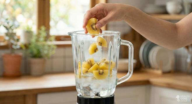 특히 껍질을 제거한 후 과육만을 활용한 주스는 비타민 C 외에도 엽산, 비타민 E가 함께 들어 있어 여러 영양소를 동시에 섭취할 수 있다. 또한 키위에는 액티니딘이라는 소화 효소가 함유돼 있어, 기름진 음식을 먹은 후나 소화가 더딜 때 마시면 속을 편안하게 만드는 데도 도움이 된다. 공복에는 산도가 부담될 수 있으니, 식후에 마시는 것이 좋다.