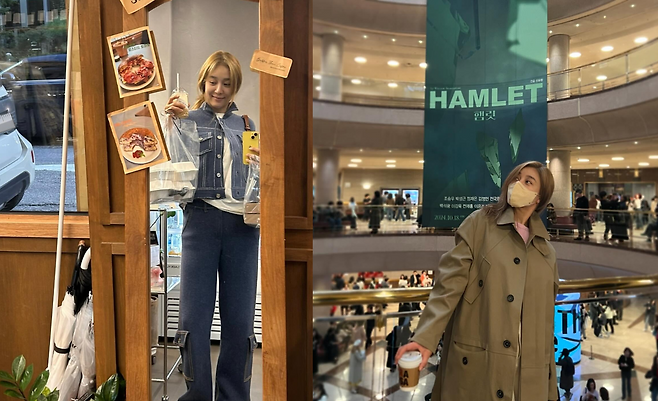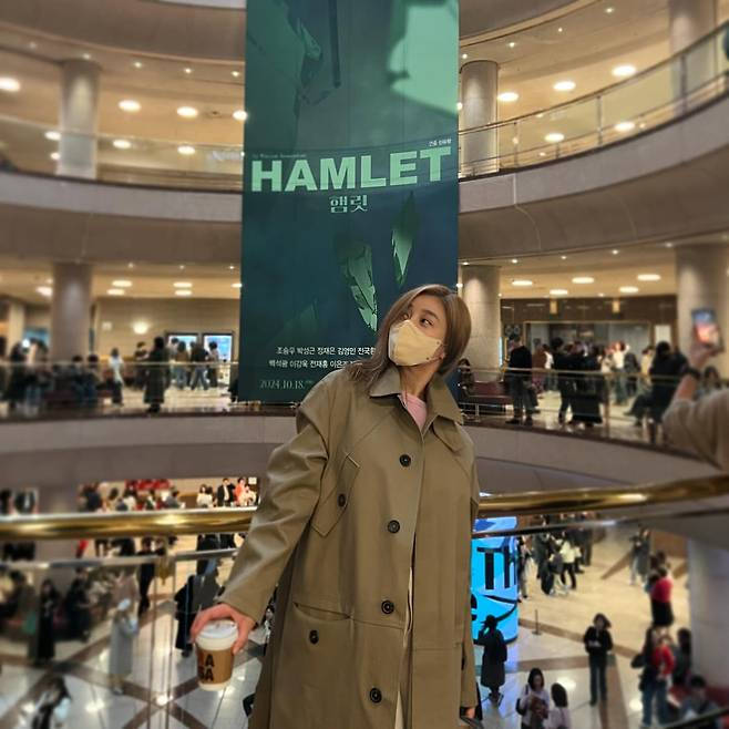 옥주현은 클래식한 트렌치코트를 활용해 뮤지컬 관람에 어울리는 세련된 스타일을 연출했다. 베이지색 트렌치코트는 품격 있는 분위기를 자아내며, 핑크색 상의를 살짝 드러내어 부드러운 포인트를 추가했다. 손에 든 커피는 일상적인 감성을 더하며, 뮤지컬 포스터와 어우러진 모습에서 문화적 여유가 느껴진다.