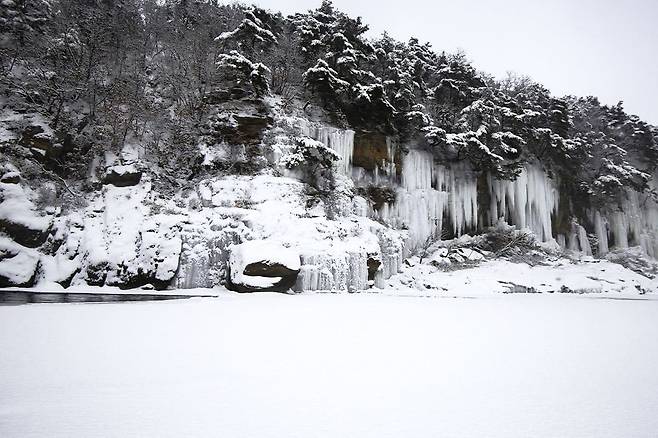 얼음 기둥과 눈 덮인 절벽은 압도적인 스케일과 함께 겨울 자연의 힘을 느끼게 합니다.