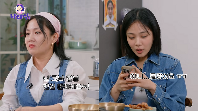 비비에 대한 팬심도 숨기지 않았습니다. 박나래는 "비비의 '나쁜X' 뮤직비디오를 보고 팬이 됐다"라면서 "'치명'이라는 단어를 사람으로 표현하면 이런 모습일 거라는 생각이 들었다"라고 감탄했죠. 그런가 하면, 두 사람의 SNS 팔로우 에피소드는 웃음을 선사했습니다. 박나래는 한때, 비비와 인스타그램 맞팔로우가 되어있지 않아 서운했다면서 과거 일화를 들려줬는데요. 이야기를 들어보니, tvN 〈놀라운 토요일〉 촬영 당시 쉬는 시간에 비비에게 팔로우 관련 이야기를 슬쩍 꺼낸 적이 있다는 내용이었네요. 이에 비비는 "맞다. 그러고 나서 까먹었다"라며 사과했고, 바로 박나래를 팔로우했죠. 박나래는 당시를 떠올리며 "이제 안 좋아할 거야"라고 팔로우를 끊었다면서도, 생각해보니 너무 유치한 것 같아서 결국 다시 팔로우했다고 너스레를 떨었습니다.
