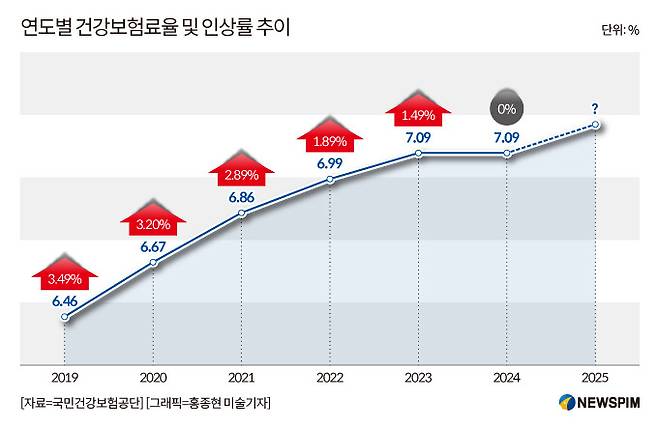 건보공단과 정부는 의료 수요 급증, 고령화, 필수의료 인프라 확대, 의정갈등 수습 지출 등으로 인상 불가피론을 내세움.