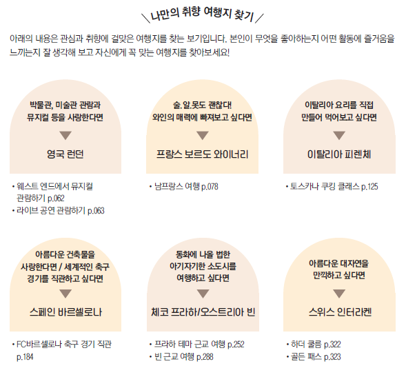 혼자 여행은 일정 조율이 자유로운 만큼, 내 관심사에 딱! 맞는 도시를 선택하는 게 정말 중요해요. 예산과 시간, 체력과 취향을 고려한 여행지, 또는 평소 못 해본 것에 도전할 수 있는 여행지를 추천합니다. 아래 추천 도시 리스트에서 내 스타일을 골라보세요.