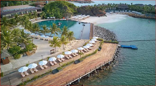 주요 시설: 프라이빗 비치, 천연 해수풀(2,500㎡), 2개의 인피니티풀, 스파, 피트니스, 레스토랑, 바, 키즈클럽