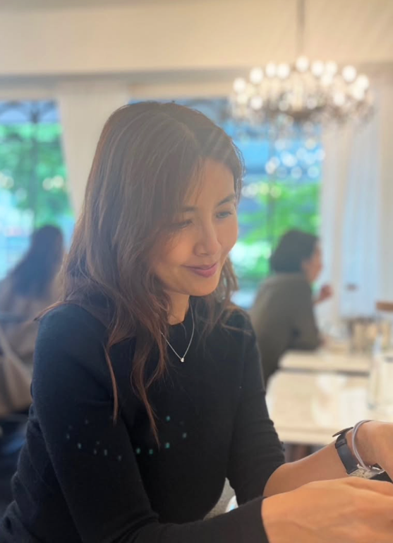 사진 속 신애라는 블랙 니트 톱에 롱 그레이 스커트를 매치해 단정하면서도 세련된 분위기를 연출했다.