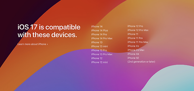 이처럼 애플 iOS17 버전은 아이폰SE 2세대, 아이폰XR, XS 시리즈부터 지원됩니다. 이 모델들 중 아이폰XR, XS 시리즈는 2018년 출시된 모델들로 출시된 지 5년 이상 되었지만 여전히 새로운 OS를 지원받아서 사용할 수 있게 되었습니다. 다만 이번에 아이폰8 시리즈 등이 제외되어 이 모델들은 보안 업데이트만 제공될 것으로 보입니다.